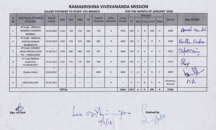 No Vacancy | 1. H.K Lodh 2. B. Halder 3. S. Kundu 4. J. Roy 5. P. Sarkar 6. A.P. Koeri 7. S. Mahato |